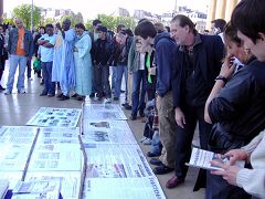Outre la démonstration des exercice les pratiquants ont aussi appris aux gens les faits de la persécution lancée il y a huit ans contre le Falun Gong par le PCC. Des photos racontaient différentes histoires tragiques. Les gens ont été particulièrement choqués par celles révélant le prélèvements d’organes sur des pratiquants de Falun Gong vivants. L' indignation et le dégoût pouvaient se lire sur les visages. Ayant appris la vérité les gens, l'un après l'autre, ont signé la pétition de soutien aux pratiquants de Falun Gong et s'opposant à la persécution du Falun Gong. Certains voulaient avoir plus de détails et quelques Chinois ont pris des photos des panneaux d’information.