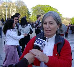 Mme Talavera, enseignante espagnole de biologie a dit : « J’ai été émue en voyant six ou sept pratiquants de Falun Gong assis sur la Place des Droits de l’Homme entrain de pratiquer un exercice de méditation au son d'une musique paisible. Cependant quand j’ai lu l'information disposée sur la table et compris qu’on prélevait les organes de personnes vivantes en Chine, j’ai été en colère. Ils ont été jetés en prison simplement parce qu’ils pratiquent des exercices de qigong appelés le Falun Gong.