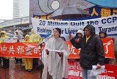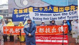 Depuis que le journal ‘The Epoch Times’ a publié l’éditorial les «Neuf commentaires sur le Parti communiste» les gens de Boston ont été témoins du formidable élan de démissions du Parti communiste (PCC) et de ses organismes affiliés; les démissions sont passées de un million à cinq millions de démissions, puis à dix millions, à quinze millions, et à maintenant vingt millions. Les gens ont réalisé que le règne despotique est en train de s’effondrer. Le Centre d'aide pour démissionner du PCC de Boston a organisé un rassemblement dont le thème était «La racine perverse du spectre pervers du PCC a été arrachée», le 14 avril 2007. Le 15 avril, le Centre d'aide a à nouveau tenu un rassemblement dans le Chinatown de Boston pour soutenir les 20 millions de courgeux chinois qui ont abandonné le PCC et ses organismes affiliés.