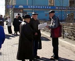 Les pratiquants racontent les faits sur la persécution du Falun Gong aux passants, à Saint Petersburg.