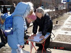 Le 9 avril 2007, les pratiquants se sont rassemblés dans les rues de St Petersburg pour exhorter le gouvernement russe à ne pas courber l’échine sous la pression du régime communiste chinois au détriment des droits de l’homme et ne pas devenir complice de la persécution, en pensant à l’avenir de la population russe.
