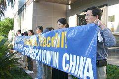 Les pratiquants commémorent l'appel du 25 avril 1999 devant le Consulat chinois