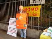 Un membre du Parti Radical de Lecce M. Maria est venu participer à la manifestation à Milan. Il a apporté une affiche qu'il avait faite lui-même suspendue à son cou. Sur son affiche orange, il y avait un symbole du Falun, quelques fleurs de lotus et les mots "Rendez sa liberté à Ma Hui."