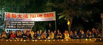 En soirée, les pratiquants ont tenu une veillée aux chandelles devant le consulat chinois, à la mémoire des pratiquants en Chine continentale qui sont morts en raison de la persécution du PCC.
