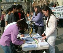 Mme Liang Zhenni, qui a récemment appelé à secourir sa plus jeune soeur qui est illégalement détenue par le PCC, est venu spécialement de Nottingham prendre part à l’activité. Mme Liang pensait qu’une telle activité exposant la persécution par le PCC était chargée de sens. Elle a dit que le PCC pour éviter la condamnation avait cessé de persécuter le Falun Gong publiquement mais que la persécution avait continué en secret ces dernières années. Les gens qui ne connaissaient pas la situation ont pu croire que la persécution n’existait pas. Mme Liang a donné un exemple de comment sa jeune sœur et son beau-frère ont été arrêtés avant le Nouvel An chinois 2007 pour leur pratique du Falun Gong. Sans passer par aucune procédure légale, lls ont été condamnés à deux ans de travail forcé. Ces faits prouvent que le PCC n’a jamais cessé sa persécution.
