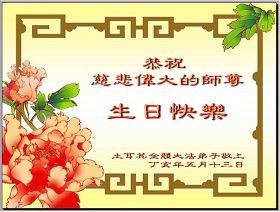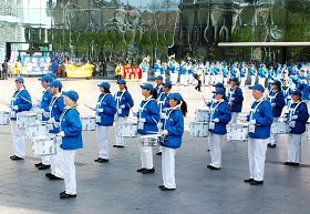 Les pratiquants de Falun Dafa de la Fanfare de la Terre Divine en Europe souhaitent avec respect un Joyeux 56e Anniversaire au Vénérable Maître et célèbrent la 8e Journée Mondiale du Falun Dafa!