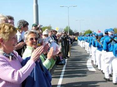 La photo suivante a été prise pendant un défilé en Hollande. Les morceaux joués par la Fanfare de la Terre Divine ont été très bien accueillis par les gens locaux.