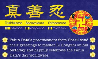 Les pratiquants de Falun Dafa du Brésil souhaitent avec respect un Joyeux 56e Anniversaire au Vénérable Maître et célèbrent la 8e Journée Mondiale du Falun Dafa!