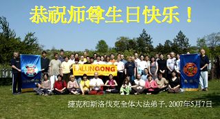 Les pratiquants de Falun Dafa de la Tchécoslovaquie et la Slovaquie souhaitent avec respect un Joyeux 56e Anniversaire au Vénérable Maître et célèbrent la 8e Journée Mondiale du Falun Dafa!
