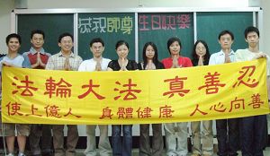 La plupart des membres du groupe de Falun Gong à l'université de Chungshan à Taiwan sont de jeunes étudiants. Ils se sont rassemblés le 8 mai 2007 pour souhaiter un Joyeux Anniversaire au Vénérable Maître.