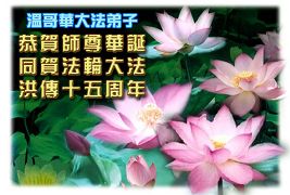 Les pratiquants de Falun Dafa de Vancouver, Canada souhaitent avec respect un Joyeux 56e Anniversaire au Vénérable Maître et célèbrent la 8e Journée Mondiale du Falun Dafa!