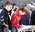 L’activité s’est tenue sur la Place Constitutionnelle dans le centre ville. Beaucoup de gens sont passés par la place et la plupart se sont arrêtés pour regarder et lire attentivement les informations sur les panneaux et écouté les explications des pratiquants. Les habitants de Kharkiv ont été choqués par la persécution et nombreux ont signé la pétition pour condamner le Parti communiste chinois (PCC). Touchées par la paix et la compassion dégagée par les pratiquants, certaines personnes ont spontanément demandé à apprendre les exercices du Falun Gong.