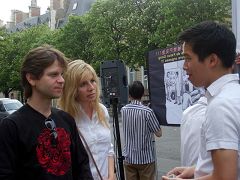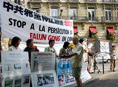 Un français d'un certain âge a discuté longuement avec les pratiquants de Falun Gong. Quand il a appris les faits sur la persécution, il a fait un discours spontané en se servant d’un porte voix. Il a dit : « Je pense que chacun a droit à la liberté. Il ne peut y avoir d’exception. La population chinoise a une culture très ancienne et une longue histoire. C’est déraisonnable de les priver de leur liberté. Ce genre de persécution que subit le Falun Gong est un crime contre l’humanité. Je ferai tout mon possible pour informer la population de cette horrible et brutale persécution.