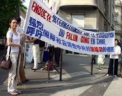 L’après midi du 27 avril 2007, les pratiquants de Falun Gong ont tenu une activité à l’extérieur de l’ambassade chinoise à Paris afin de commémorer le huitième anniversaire de l’appel du 25 avril. Les pratiquants de Paris ont manifesté contre les huit ans de persécution brutale du Falun Gong par le Parti communiste chinois (PCC) et particulièrement l’atroce collecte d’organes sur des pratiquants de Falun Gong de leur vivant. Entre temps, ils ont fermement demandé la libération de Ma Jian, pratiquant de Falun Gong et manager pour la Chine et l'Asie du nord de PCM une entreprise française. Ma Jian a été enlevé, battu par la police et emprisonné dans un camp de travail pour deux ans et demi.
