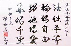 M. Wu Chinghsiang, un architecte, a conçu la forme des caractères. Il a dit que les pratiquants en Chine ne peuvent pas organiser une telle activité en raison de la persécution, alors les pratiquants la font à Taïwan, ce qui encourage les gens et permet à davantage de gens de connaître le Falun Gong.