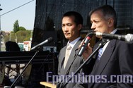 | Zhao Ming (à gauche ) d'Irlande a décrit au forum son expérience personnelle des camps de travail en Chine où il a été torturé pour sa pratique du Falun Gong. | Dans le Parc Letna, Prague, les gens ont pu voir une exposition de peinture organisée par les pratiquants de Flaun Gong dans le cadre de leurs efforts pour révéler la persécution du Falun Gong. |
