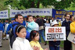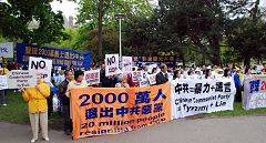 Plus de 1.000 personnes de tous les milieux se sont rassemblées dans le Parc Queen à Toronto au Canada le matin du 20 mai 2007, pour tenir un rassemblement soutenant les 22 millions de Chinois qui ont démissionné du parti communiste chinois (PCC) et de ses organismes affiliés. Un certain nombre de personnes ont annoncé leurs retraits du PCC sur place.