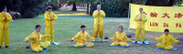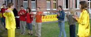 Le groupe du Falun Gong a été installé sur la pelouse de l'université, on pouvait lire sur une grande bannière dorée `` FALUN DAFA ' '. Les cinq exercices du Falun Gong ont été montrés sur grand écran. Les pratiquants de Falun Gong ont distribué une information à propos du Falun Gong qui passaient en un flux continu.