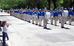 Falun Gong était représenté par la Fanfare de la Terre Divine, les danseuses du Groupe des Fées Célestes, un groupe de démonstration des exercices et un groupe de tambours de ceinture. Leur présentation a très bien été perçue par les spectateurs et certains ont pris des photos d’autres ont fait des vidéos.