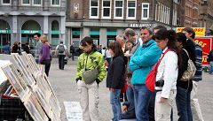 Amsterdam est une attraction touristique renommée. Ce jour là beaucoup de touristes de différents pays ont été témoins des atrocités commises par le Parti communiste chinois. Les pratiquants ont mis à disposition des informations sur le Falun Gong dans plus de dix langues pour satisfaire les personnes de différentes nations. Ils ont informé les gens encore et encore que beaucoup de choses terribles se produisaient en Chine. Chaque personne ayant appris la vérité a été choquée. Un monsieur chinois a dit avec émotion, « je vous vois également dans d'autres pays, vous êtes vraiment remarquables »