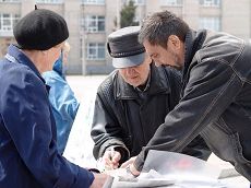 Pendant l'activité, un Ukrainien âgé a été attiré par la paix dégagée par la démonstration des exercices sur la place. Faisant de gros efforts, il a marché jusqu'aux panneaux d'information et lu attentivement. Indigné d'apprendre que le PCC persécute des personnes qui croient en "Authenticité, Compassion, Tolérance," il a demandé à signer la pétition pour condamner les atrocités commises. Puis le vieil homme s'est éloigné à pas lents. Alors qu'il était encore près, une bande de pigeons l'ont entouré, il a tendu les mains et les pigeons s'y sont posés ainsi que sur ses épaules comme s'ils le connaissaient. Selon les résidents locaux, le gentleman a un très bon cœur, c'est pourquoi les pigeons n'ont pas peur de lui.