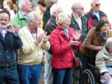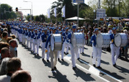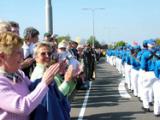 Le cortège du Falun Gong était divisé en trois parties : La Formation céleste, les danseuses et une troupe de tambours de taille. Tous ont été chaleureusement applaudis par un public enthousiaste. la Formation céleste avançant en tête du défilé a reçu de nombreux commentaires élogieux : "Il y a vraiment une sorte d'esprit dans la musique qui vous donne un sentiment spirituellement sublime."