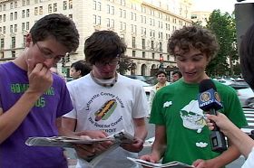 justice” et “Falun Dafa est bon”. Plusieurs pratiquants ont distribué du
