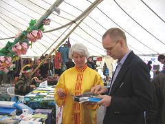 Bien qu'il ait fortement plu dans la matinée du 26 et que le sol était boueux, les gens sont tout de même venus avec beaucoup d'intérêt. Les rythmes de différents pays, les variétés d'arts, d'artisanats et de nourriture, le tout rendait le village très animé. Les pratiquants de Falun Gong ont accueilli les visiteurs.