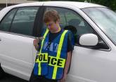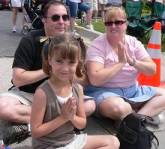Maggie, âgée de 10 ans et ses parents saluent les pratiquants