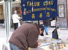 La météo avait annoncé un temps froid et pluvieux, mais quand les activités ont commencé le temps s’est éclairci et la température réchauffée. Beaucoup de gens ont eu l'occasion de mieux connaître le Falun Gong.