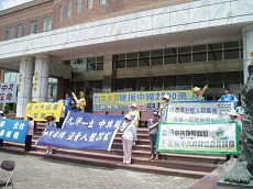 Professeur Wang Tingsheng de l'Université de Yunghua, ancien membre du Congrès est venu apporter son soutien au rassemblement. Il a déclaré que les activités organisées par les pratiquants de Falun Gong contre la persécution sont justes et qu'il avait aidé aux activités contre les prélèvements des organes. Il s’est dit être fier du fait que tant de personnes soient venues soutenir les renoncements au parti. Il a déclaré : « Nous sommes ici aujourd'hui pour dire au gouvernement chinois que la persécution brutale doit s'arrêter. La brutalité du PCC apportera le désastre à la Chine. Il a également dit que par les activités des participants contre la persécution contribuaient à la paix en Chine.