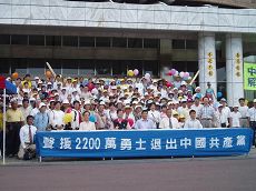 Le 3 juin 2007, des citoyens des comtés de Yilan, Hualien et Taitung, à Taïwan, ont organisé une rencontre et un défilé pour soutenir les 22 millions de renonciations à l'adhésion au PCC. Deux convois de camionnettes sont partis chacun de Yilan et Taitung pour se retrouver à Hualien. Les participants ont tenu une conférence de presse devant la Place du Conseil Municipal à Hualien. A 11h 50, les participants ont commencé un défilé le long des rues Chungcheng, Chungshan, Chunghua, la gare ferroviaire et le Stade Dehsing.