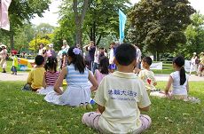 Lingwen qui a six ans, est venu à Toronto de Chine continentale il y a trois mois, il a dit au journaliste, "Personne ne viendra m'arrêter au jourd'hui. En Chine je ne pouvais pas faire les exercices dans le parc." Sa mère a dit : "Nous sommes très heureux d'avoir pu l'amener à l'activité aujourd'hui. Tenir une telle activité en Chine est impossible."