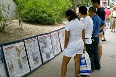 M. Wang, un pratiquant de Falun Gong a dit au journaliste que de nombreux touristes étaient venus aujourd'hui au festival et que beaucoup d'entre eux avaient demandé des informations aux pratiquants. Il a dit : "Nous avons dénoncé aujourd'hui l'histoire perverse du PCC. Beaucoup de gens ont lu attentivement l'information exposée. Une dame m'a dit qu'elle connait les faits de la persécution puis elle a démissionné du parti à mon stand."