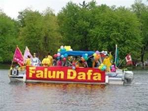 Le bateau fleuri des pratiquants de Falun Gong était particulièrement attirant,