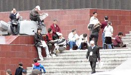 Vladivostok est une grande ville de Russie proche de la frontière entre la Russie et la Chine. Il y a de nombreux touristes chinois qui viennent à Vladivostok. Pour clarifier les faits à propos du Falun Gong à ces personnes chinoises, les pratiquants de Falun Gong ont distribué une information sur les sites touristiques pendant plusieurs années. Malgré que les pratiquants russes ne puissent pas parler chinois, ils ont constaté des changements dans l'attitude des Chinois envers le Falun Gong. La photo suivante prise sur un site touristique est typique, on y voit un groupe de touristes chinois dont la plupart lisent des journaux expliquant les faits à propos du Falun Gong.