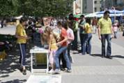 Les pratiquants ont déployé de grands posters qui ont immédiatement attiré l'attention de nombreux passants. Ils ont commencé à se rassembler devant la pétition et à lire l'information avec attention. Beaucoup d'entre eux ont posé des questions à propos de l'essence de la pratique et des raisons de la persécution. Tous les citoyens de Plovdiv ont accueilli cordialement les pratiquants et ils ont écouté leurs explications. Une femme a tellement apprécié les exercices qu'elle a laissé son adresse dans le but de recevoir par la poste le livre d'introduction à la pratique: Falun Gong . Une autre personne a pris le livre le jour même, voulant le lire tout de suite. Beaucoup d'enfants ont signé la pétition et ont pris avec joie des fleurs de lotus en papier comme souvenirs. Il a fait beau et chaud ce jour là et la rue principale de Plovdiv était remplie de monde.