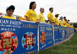 Zhang Erping, porte-parole du Falun Gong, a dit : « Au cours des huit dernières années, les actions des pratiquants de Falun Gong contre la persécution ont été basées sur 'Authenticité-Bienveillance-Tolérance', au lieu de la violence. Nous avons pris un chemin pacifique pour clarifier la vérité à propos du Falun Gong. »