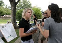 Ileana Ros-Lehtinen, membre du Congrès pour la Floride, a participé aux rassemblements contre la persécution à Washington chaque 20 juillet depuis 1999. Cette année, son emploi du temps ne lui permettait pas de venir, alors elle a envoyé son assistant pour faire un discours à sa place. Mais avant la fin du rassemblement, elle est venue et a fait elle-même un discours.