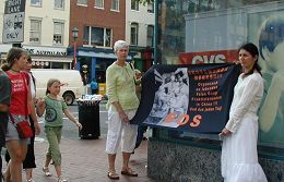 Mme Huang de l'Allemagne est allée dans un restaurant après l'activité. La propriétaire du restaurant a vu « Falun Dafa» sur son t-shirt jaune et elle lui a demandé si les pratiquants allaient défiler le jour suivant. La propriétaire a dit à Mme Huang que le défilé passait devant son restaurant chaque année et elle et ses employés aimaient le voir passer. Mme Huang a parlé avec elle et en fin de compte, l'a convaincue de démissionner du parti.