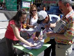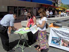 Les 7 et 8 juillet 2007, dans le centre animé d'Ankara, les pratiquants de Falun Gong ont suscité une prise de conscience et rassemblé des signatures, révélant la persécution du Falun Gong par le PCC, et en particulier le prélèvement d'organes sur des pratiquants de Falun Gong de leur vivant. Il ont appelé les gens à aider à mettre fin ensemble à la persécution.