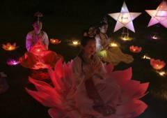 On nous avait réservé un très bel espace pour installer les lanternes et nous avions invité quatre « fées célestes » à venir danser dans les fleurs de lotus. La danse et la belle musique créée par des pratiquants ainsi que la pureté et la simplicité des lanternes ont fait que les gens s'exclamaient de plaisir. Les gens s'attroupaient pour voir le spectacle.