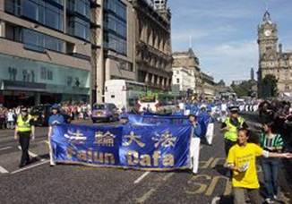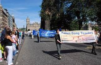 Le 4 août 2007, veille de la Cavalcade marquant l'ouverture du Festival international d'Edimbourg, la Fanfare de la Terre divine européenne, constituée de pratiquants de Falun Gong du Royaume-Uni et d'autres pays européens, a défilé en soutien aux vingt quatre millions de personnes qui ont quitté le Parti communiste chinois (PCC). D'autres activités ont été également tenues sur les sites touristiques autour d'Edimbourg pour faire connaître le Falun Gong et expliquer les faits concernant la persécution au grand public.