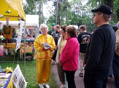Les pratiquants de Falun Gong ont loué un stand et suspendu des bannières avec les messages : ‘’ Falun Dafa est bon’’, et ‘’Les pratiquants de Falun Gong en Chine sont persécutés par le Parti communiste Chinois’’. A part distribuer une information, ils ont fait la démonstration des exercices du Falun Gong. De très nombreux touristes se sont installés pour regarder, discuter et beaucoup d’entre eux ont signé la pétition déclarant leur soutien et leur condamnation de la persécution.