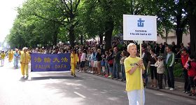 Le 21 juillet, les pratiquants de Falun Gong ont participé, sur invitation, au défilé des vacances de Finlande, la première bannière était portée par un jeune pratiquant, Samuli, on pouvait y lire FALUN DAFA, puis une bannière bleue et dorée annonçait :‘’ Falun Dafa fraie le chemin ’’, derrière quatre jeunes pratiquantes faisaient danser des fleurs de lotus qu'elles tenaient dans leurs mains. Suivaient cinq pratiquants en costumes d’exercices jaunes d’or faisant des démonstration des exercices. Finalement, la bannière Authenticité, Compassion et Tolérance en Chinois. La foule applaudissait sans cesse, les gens tendant leurs mais pour prendre l'information et les fleurs de lotus .