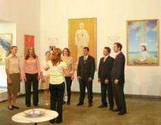 Il a été ravi d'entendre parler de l'exposition et a immédiatement accepté de faire un discours lors de l'ouverture. Il a dit que d'habitude les visiteurs reçoivent une liste des tarifs lors d'une visite privée peu importe que l'artiste soit un professionnel ou un amateur. Il a regretté que la plupart des artistes et du public négligent les violations des droits humains ainsi que l'injustice si des intérêts économiques sont en jeu. Il nous a remercié de lui avoir donné l'opportunité de faire ce discours, et a exprimé son espoir que la persécution s'arrête bientôt et, finalement, a souhaité ce qu'il y a de meilleur au club et à tous les pratiquants.