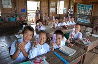 Le cinquième jour, nous avons visité une école élémentaire. C’était un bâtiment de bois délabré au bord d’un lac. Quatre professeurs enseignaient à cinquante trois enfants répartis dans six classes. Mon mari a donné une brève explication au principal et distribué les documents de présentation. Nous espérions que ceux ayant des relations prédestinées avec Falun Dafa pourraient au moins se l'entendre présenter. C’était le moins que nous puissions faire.
