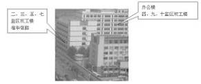 À gauche, en entrant par la porte principale il y a le bâtiment de l’hôpital de la prison, où il y a une cellule d'enfermement dans l’aile nord du premier étage. Près de la cellule se trouve l’équipe d’orientation de la prison. Chaque nouvelle prisonnière doit d'abord rester dans l’équipe d’orientation, où elle est forcée de passer par des séances de soi-disant « éducation » qui déforment l'esprit. Cette équipe d’orientation est maintenant devenue un lieu où les pratiquantes sont forcées par toutes sortes de méthodes basses à abandonner leur croyance. C’est la soi-disant « transformation ». Après leur transformation elles vont être assignées à d’autres salles pour y effectuer du travail manuel. L’équipe d’orientation est située au premier étage de la section ouest du bâtiment orienté vers le sud. Au deuxième étage il y a les 2ème, 3ème et 7ème quartiers. La partie ouverte devant le bâtiment près du mât pour le drapeau est souvent utilisée pour y tenir des réunions et des représentations théâtrales.