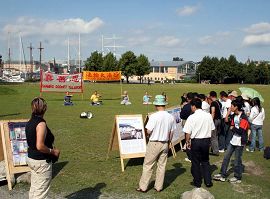 Les 4 et 5 août 2007, les pratiquants du Falun Gong de Suède ont pratiqué les exercices ensemble, émis la pensée droite et "clarifié la vérité" près du célèbre ‘Shipwreck Museum’ de Stockholm. Durant ces activités, les pratiquants ont fait la démonstration des cinq exercices du Falun Gong. Dans le même temps, ils ont également parlé aux gens de la vague de démission du Parti communiste chinois (PCC) à la suite de la circulation des Neuf commentaires sur le Parti communiste, et révélé la persécution cruelle du Falun Gong par le Parti, qui dure depuis plus de huit ans, et les atrocités de prélèvements d’organes sur des pratiquants du Falun Gong encore vivants, qui n’ont pas cessé à ce jour.