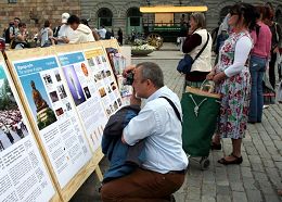 Pendant ces deux jours il y a eu particulièrement un grand nombre de Chinois qui sont venus sur la place. La plupart des gens ont constaté que les touristes venus de Chine avaient changé leur attitude. De plus en plus de Chinois acceptent le journal Epoch Times, les Neuf commentaires sur le PCC et d’autres matériels de clarification. Certains restaient debout devant les banderoles et les panneaux d’information et les lisaient attentivement alors que d’autres prenaient l’initiative de discuter avec les pratiquants. Après avoir accepté un journal un couple l’a remis au pratiquants des deux mains, et l’homme a dit avec sérieux : « Comme j’ai un logiciel qui peut briser le blocage Internet du régime communiste chinois, je peux accéder à toutes les informations. Je sais que vos matériels sont précieux, il vaut mieux que je le laisse à d’autres car ils en ont vraiment besoin. » En parlant de la grande vague de démission du PCC et de ses organisations affiliées il a dit en plaisantant : « Nous avons démissionné du PCC il y déjà quelques temps. Je pense que la campagne lancée par Epoch Times encourageant les Chinois à démissionner du PCC est appropriée pour des gens comme nous qui sommes confrontés à une situation hostile en Chine. Merveilleux ! Merci beaucoup. S’il vous plait soyez assurés que je sais maintenant ce que je dois faire pour mes parents et amis autour de nous. »